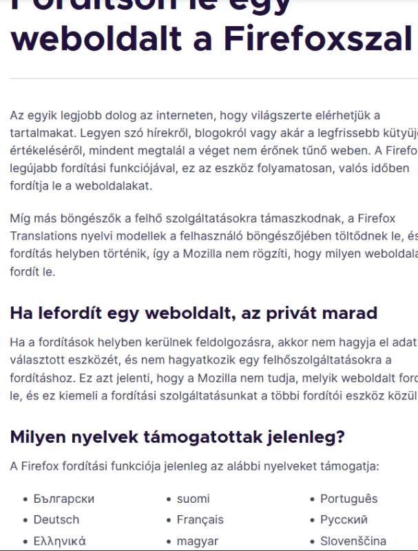 ITT azt mondja maga a Firefox, hogy a fordításnál a magyar is támogatott: