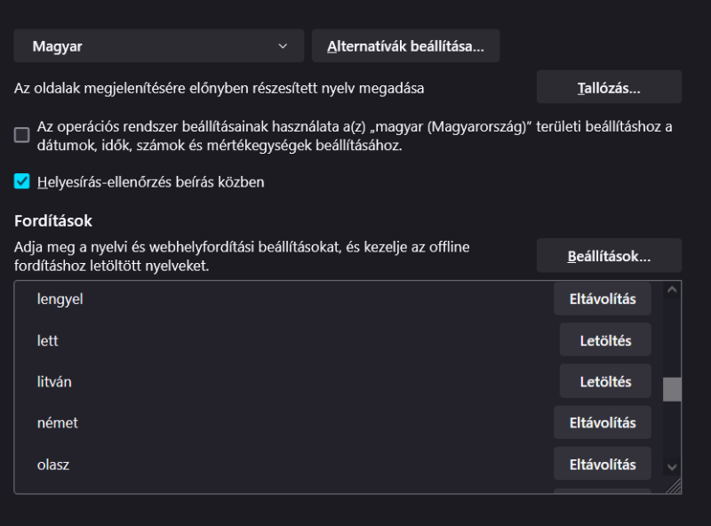 Magyarra "ferdítenék" a Firefox oldalakat, de a beállításoknál nincs a magyar felsorolva a letölthető-letöltött nyelvek között.