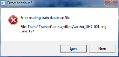 Line: (változó pl.: 127, 104, 77, 89)2.) Error reading train database file