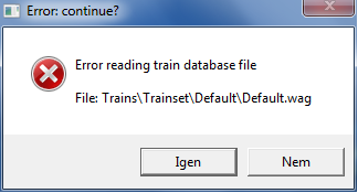 Nekem is ugyan az a bajom, hogy ha MÁV-os pályákat, vonatokat rakok bele ezt a hibaüzenetet írja ki:Trains\Trainset\acthu_villany\acthu_1047-001.eng