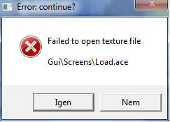 Kiderült hogy az általa keresett routes\Alfold_5\textures\night\DDu_va_Godisa.ace nem található, ehelyette van ilyen DDu_va_Godisa2.ace, így lemásoltam DDu_va_Godisa.ace-re. Nem lépett ki, végigjátszottam és jó lett.