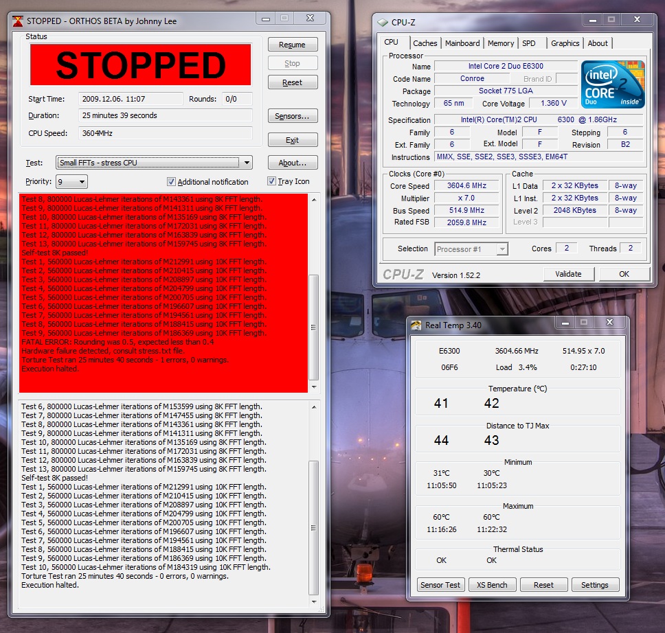 Úgy nézem, valami még nem kerek a dologban. Miközben megy a prime/orthos/ibt monitorozd a vcore-t, hogy mennyire csökken 1.35V-ról, alapból elég nagy feszültség esik a kevés stabkocka/fázis miatt, ezért elképzelhető, hogy kevés lesz neki a fesz. Ha 1.35-ről leesik 1.3-ra kb., akkor próbálj meg csak a procinak beállítani 1.375V feszt, és nézd meg úgy. Ha így sem megy, akkor ott valami sz@r van a palacsintában. Ha viszont megy vele, akkor elő lehet venni esetleg a 2B-s ceruzát a stabil 1,35 érdekében.