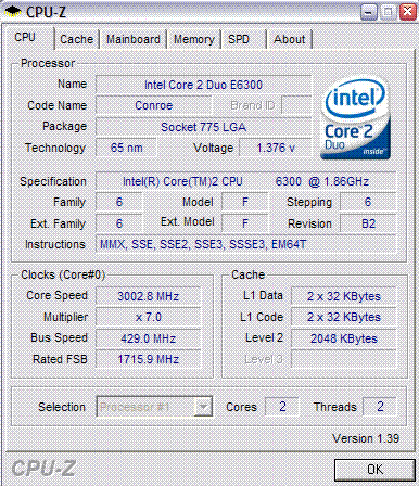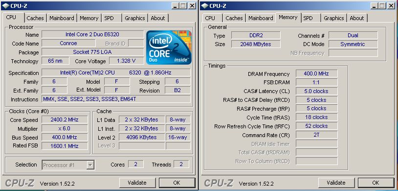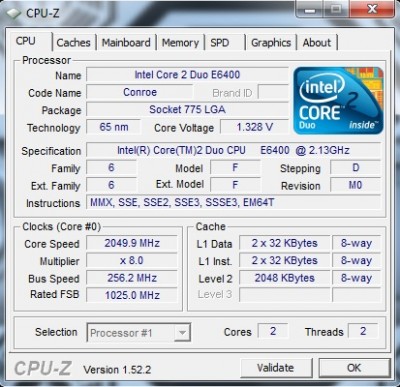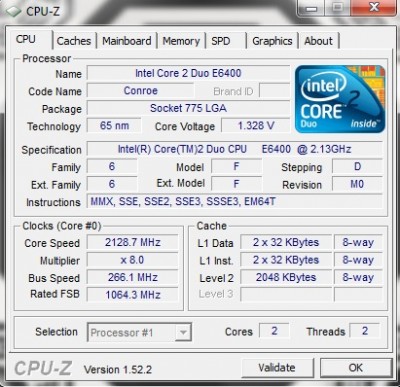 CPU:Intel Core 2 Duo E6400 2133Mhz