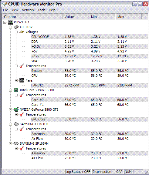 Beraktam egy e6400-at a gepembe, es az eddig 500-600 rpm-mel meno venti lement 250 rpm ala, illetve megallt, az alaplap meg fan failure riasztast adott. Az everest szerint a proci 28 fokos. Atallitottam a lapot, hogy gyorsabban mennjen a venti es ne riasszon. Ez a 28 fok normalis (szoba 23 fokos), vagy valami hiba van a rendszerben, es rosszul mer?