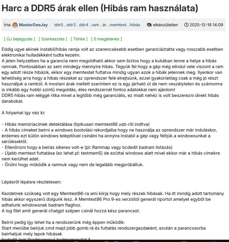 Konkrét példát mondok. Vettem egy ramot aprón, hibásat mert egy projekthez kell. Viszont a projekt nem sikerült (win11 alatt ez nem működik).