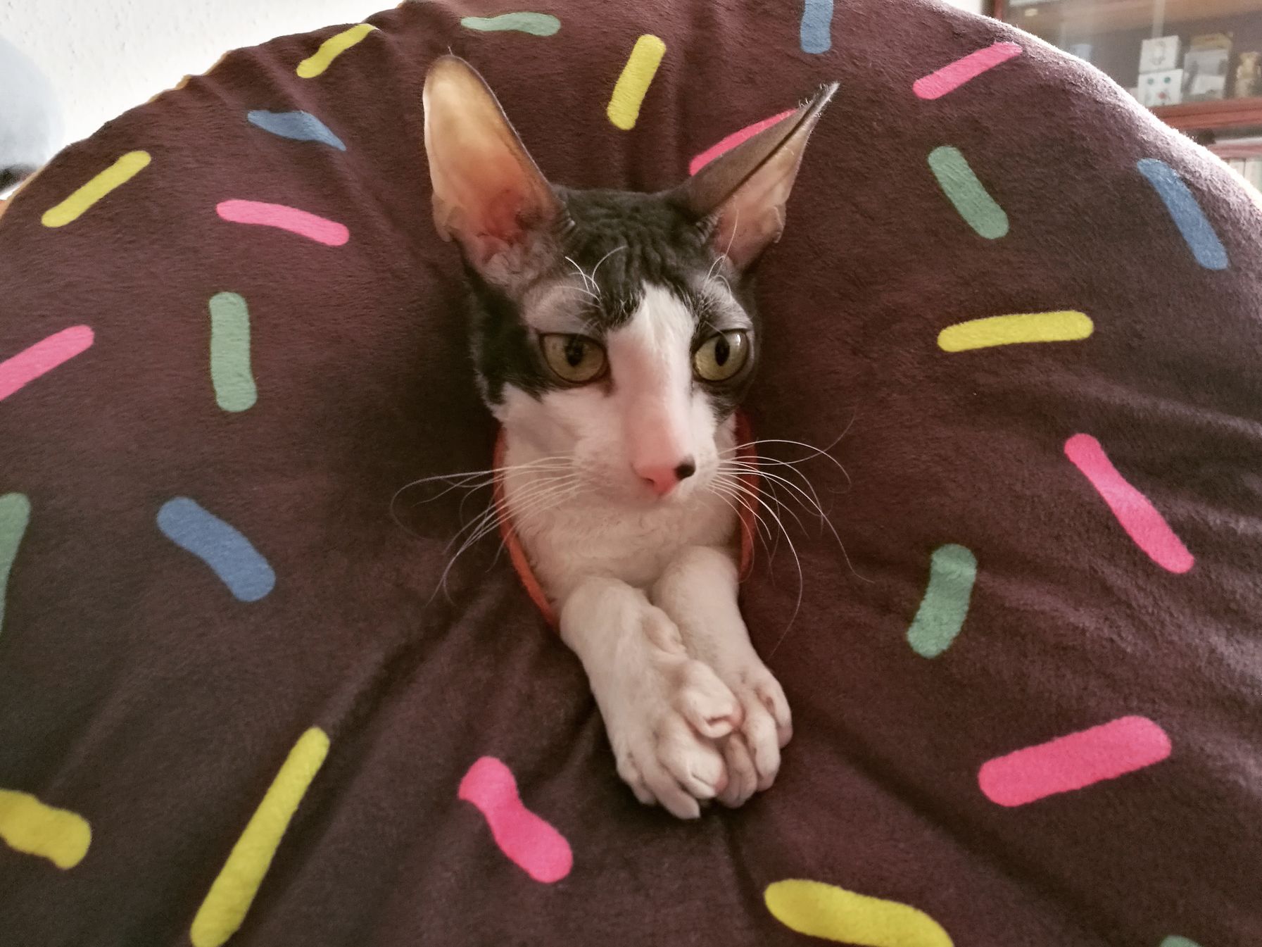 lakásban élt, 5 másik cicával, és nem mászkált ki a lakásból.