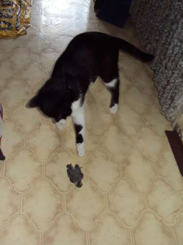 Mondom, ha már megfogta, hadd legyen meg az öröme, nem vettem el tőle. Végül nem ette meg, eljátszadozott vele, püfölgette egy darabig, majd otthagyta.