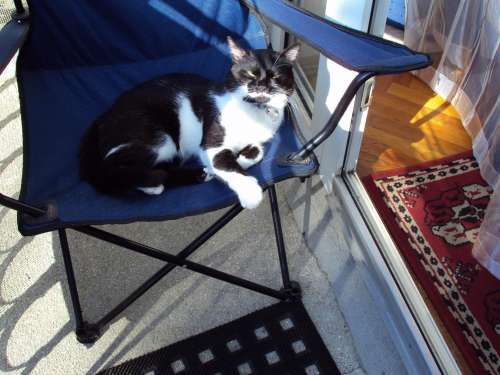 De a kedvenc pihenőhelye a másik szobából nyíló erkély, ahol saját napozószéke van: