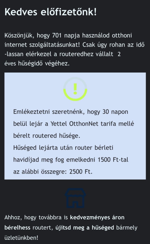 Lassan lejár a 2 év hűségem a Yettel OtthonNet router bérlésre.