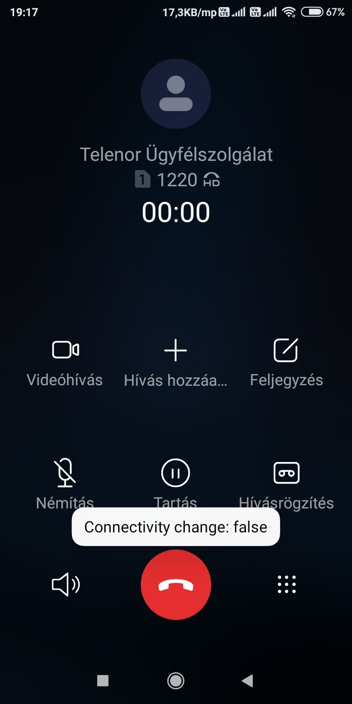 Ez a connectivity change: false az elmúlt napokban nálam is megjelent. Leszedtem a yettel appot, megnezem úgy csinálja e. Amúgy 1 és 2 simkártyával is csinálta.