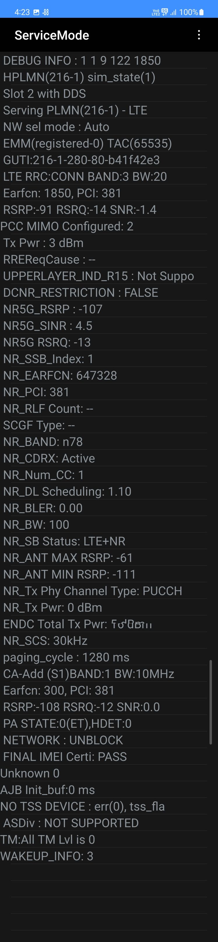 Jártam ma Debrecent autóval. Telefonon elindítva a Cellmapper. Nem is ez a lényeg. A Network Cell Info is kukkolja.a hálózatot, statisztikát készít, hogy melyik hálózat milyen volt amit hasunált. Érdekes, a mai napról az 5G esetén semmiféle statisztikai adat nincs. Namármost, 4G-ről nem vált feljebb valami bug miatt, vagy egyszerűen nem látja szükségesnek,.hogy fel váltson? Tény, adatforgalmi keret nem volt, talán ez is magyarázhatja dolgot. Modt adtam adatkeretet, de nem tudom mikor járok a városban ismét.