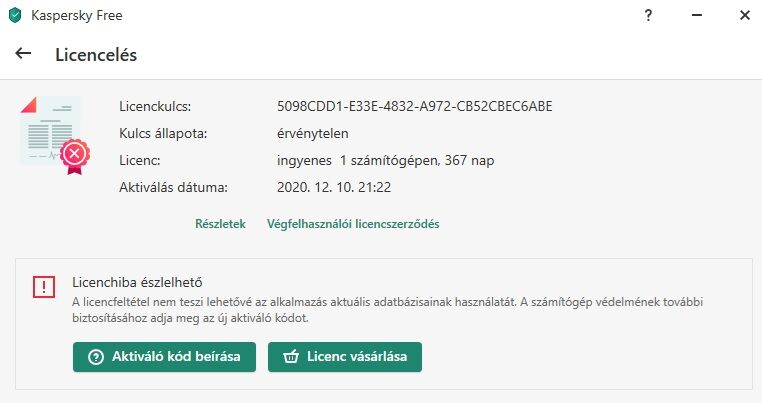 Ez gondolom valami kiszivárgott Corporate kulcs, amit a cég érvénytelenített...Ja most látom, hogy free - lehet valami baj volt a regisztrációval... -