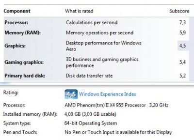 Nem vagyok egy nagy teszter, meg 3DMark pont függő, főleg nem windows élményindex pontszám függő, de azért bántja a csőrömet, hogy ez mitől lehet.