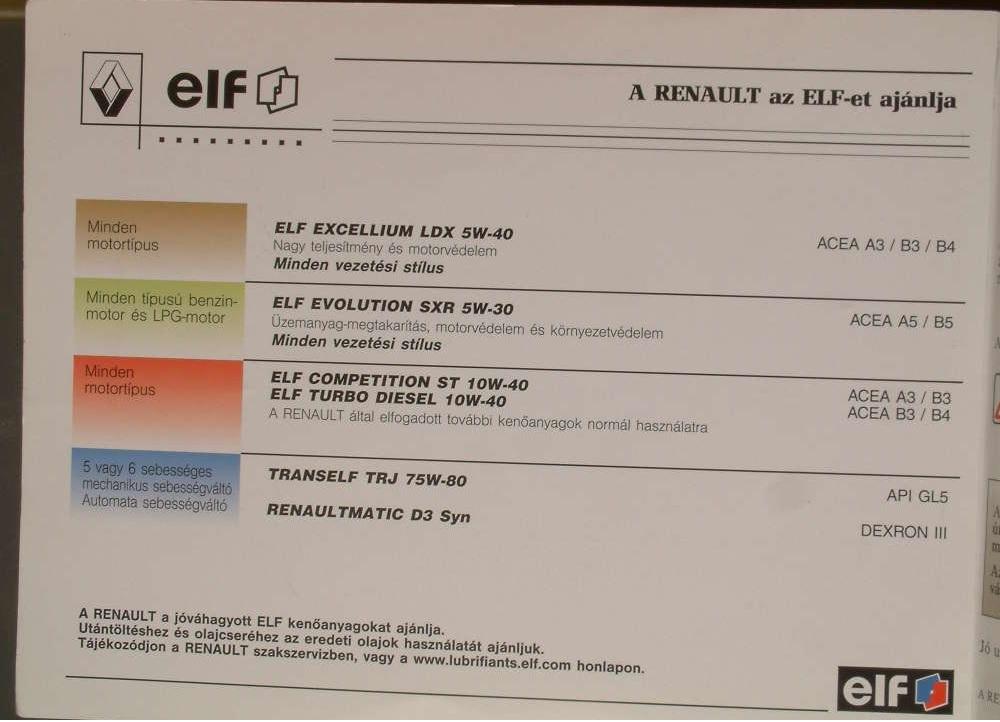 Nekem a Clio használati útmutatójában fel van sorolva minden 15w40től 5w30ig. És oké hogy az 5w30 az ajánlott MINDEGYIK motorhoz (kiemelve hogy üzemanyagtakarékos) de a többi is megengedett, pl normal drivinghoz a 10w40 van is írva. Egyedül a 2.0 16v RSbe ajánlják kifejezetten az 5w40et. -