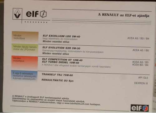 illetve az ELF olajok igen jelentős része nem tudja, viszkozitás ide vagy oda. Arról nem is beszélve, hogy ezek már kifejezetten Longlife olajok...Ezzel csak annyit akarok mondani, hogy egyrészt a viszkozitás önmagában nem jár egyértelműen kéz a kézben a szabványokkal és megfelelőséggel, illetve, hogy nem kellene a frászt hozni az emberekre félinformációk alapján, főleg nem olyannal, hogy tönkre fog menni a motorjuk.