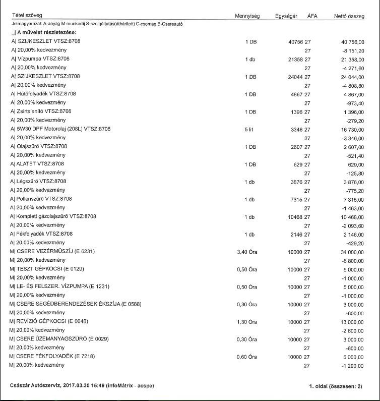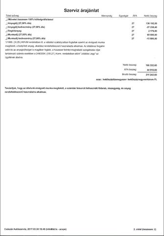 Eljött nálunk a "nagyobbacska" szervíz ideje, ami pontosan a következőket tartalmazza (vezérléscsere, motorolaj csere, olajszűrő, levegő és pollen szűrő, váltóolaj csere ÉS első féktárcsák és betétek cseréje). Kértem egy Renault szervízben (nem tudom hogy pontosan megnezevhetem-e itt) egy árajánlatott. hát kaptam...