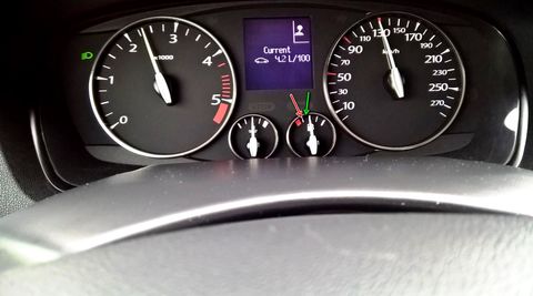 A képen látható, hogy a piros nyíl mutatja, hogy az első vonalon volt a mutató, mikor beálltam tankolni. Tankoltam 5000 ezerért, 392ft/liter áron. az 12.7 liter, és a zöld nyíl mutatja, hogy pont a kettő között mutat tankolás után, de megmondom őszintén, nekem ez kevésnek tűnik, Kb inkább a fél előtt egy kicsivel vártam, de lehet, hogy így jó... szerintetek?