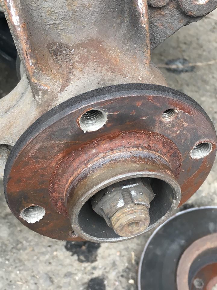 Elrettentő példának egy szerelőpaszta miatt a kerékagy forgórészével összerohadt tárcsa helye: