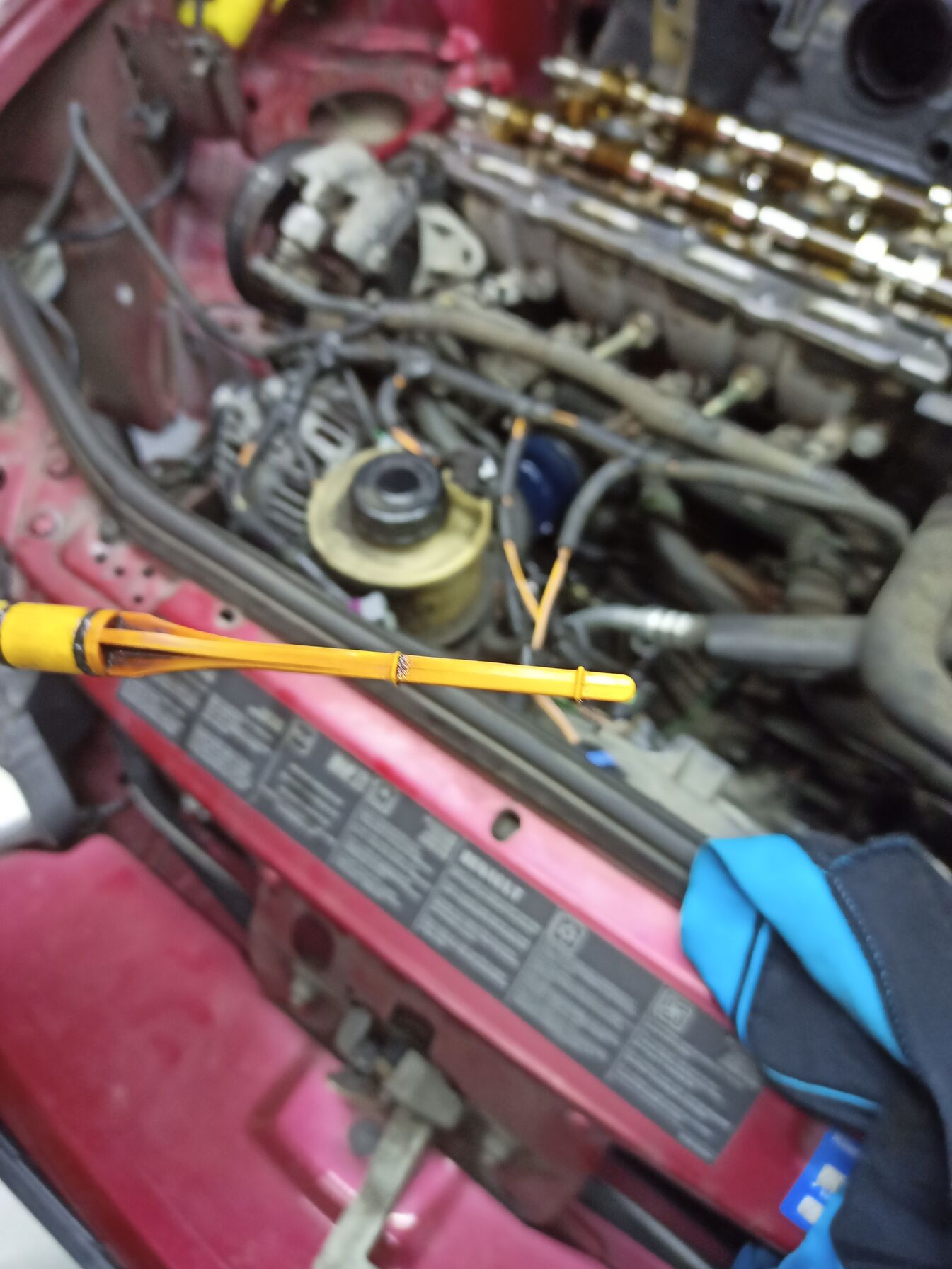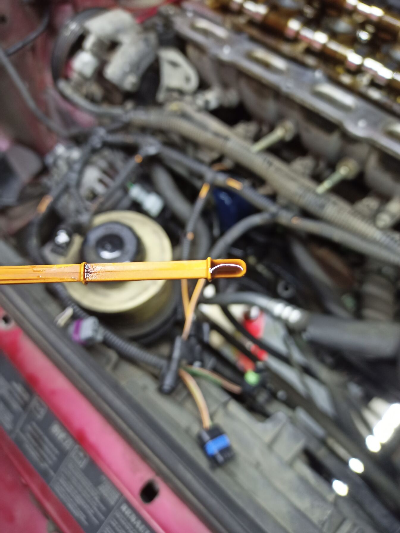 Olajcsere tavasszal volt, par ezer km-el korabban, es bar mostansag csak rovid tavokat ment elotte, azalatt is kellett ratolteni (palyan ment neha).