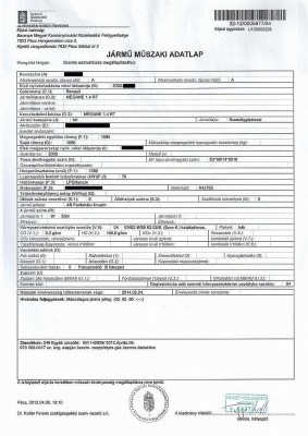 Helyben megkaptam a Műszaki adatlapot, ami alapján az okmányirodában