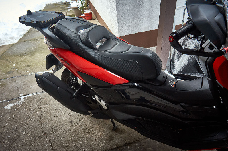 Idei első, szűk 70 km-es karikámat ma (plusz kilenc fokban...) megtettem, és jelentem: a deréktámasztól megfosztott kínai komfort ülés sokkal jobb, mint a gyári volt. Egyszerűen minden irányban több helyem van, "nagyobb" (magasabb, szélesebb, hosszabb) robogó van alattam. Jó lesz ez!