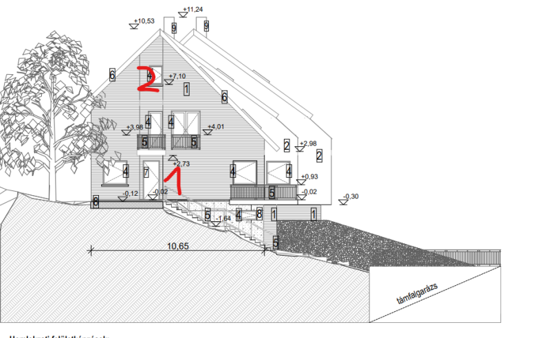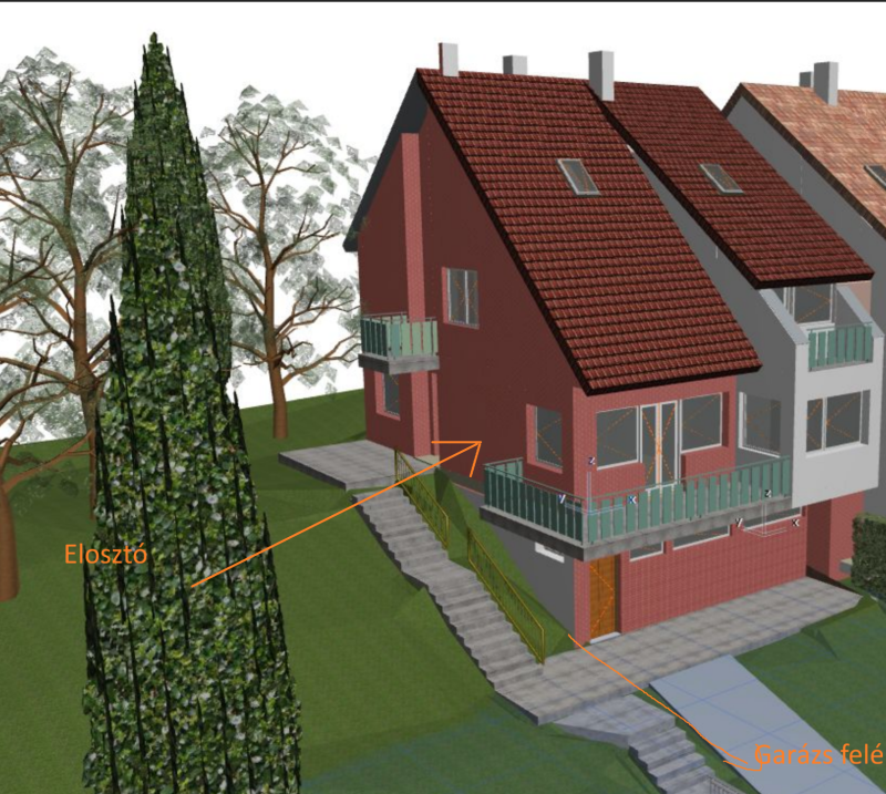 Azért számoltam 7kWp-t, mert nyáron így is bőven eleget termelne, sőt. Két tetőrész van, az egyik 45 fokos, a másik 35.