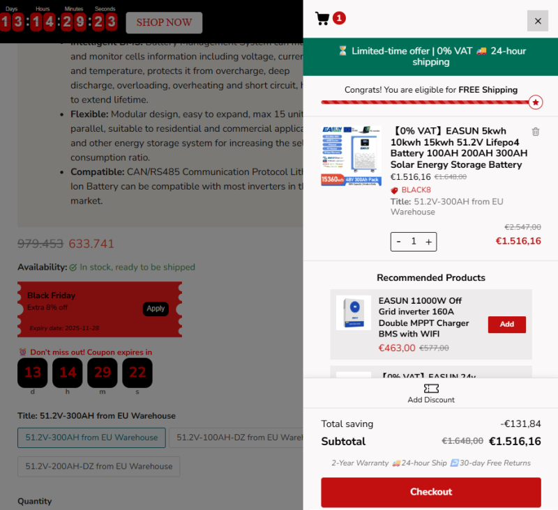 https://www.powland.net/products/easun-power-48v-100ah-lifepo4-battery?variant=51948613861692 -