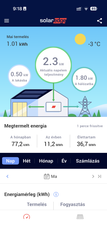 Nekem 8,5kWp, decemberi termelés 58kWh