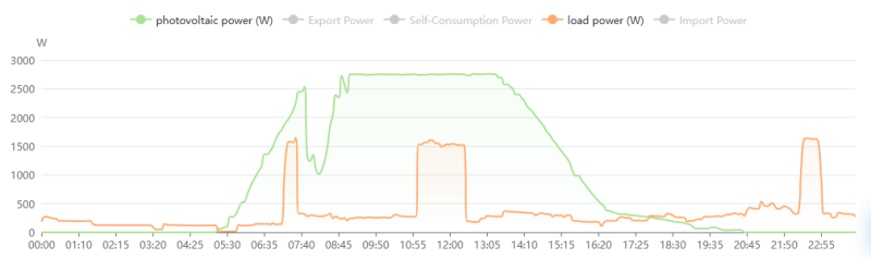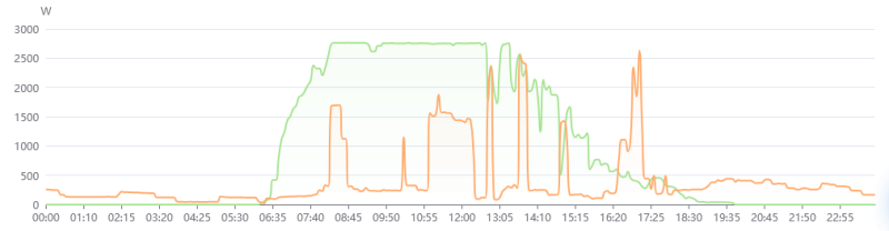 A bojler nyáron nappalra időzítve megy, amikor vélhetően van napáram, sőt a végén még azt az esti fél órát is el tudtam venni tőle (az első egy üres nap, semmi nagyfogyasztó nem ment aznap, a bojleré az összes púp)