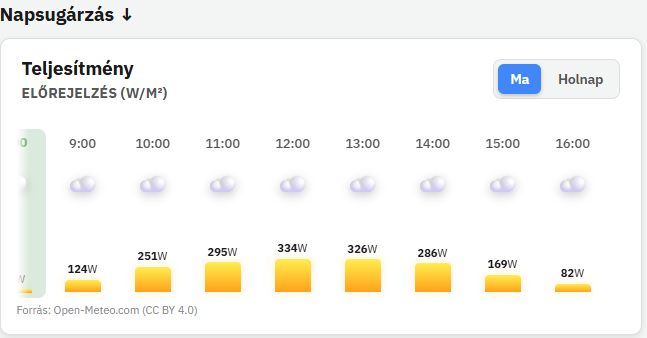 Már most 1500W körül esik be, amit 8:27-kor reggel kifejezetten jó teljesítménynek gondolok.