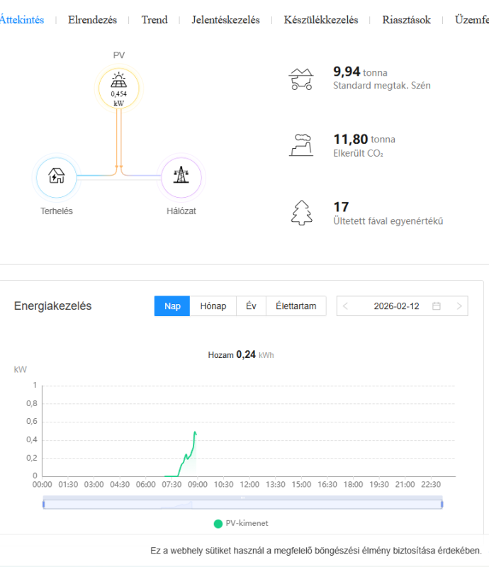 Dec.-i termelés 50kWh, fogyasztás 500.De tavaly februárban volt 200 a termelés, idén eddig 35.