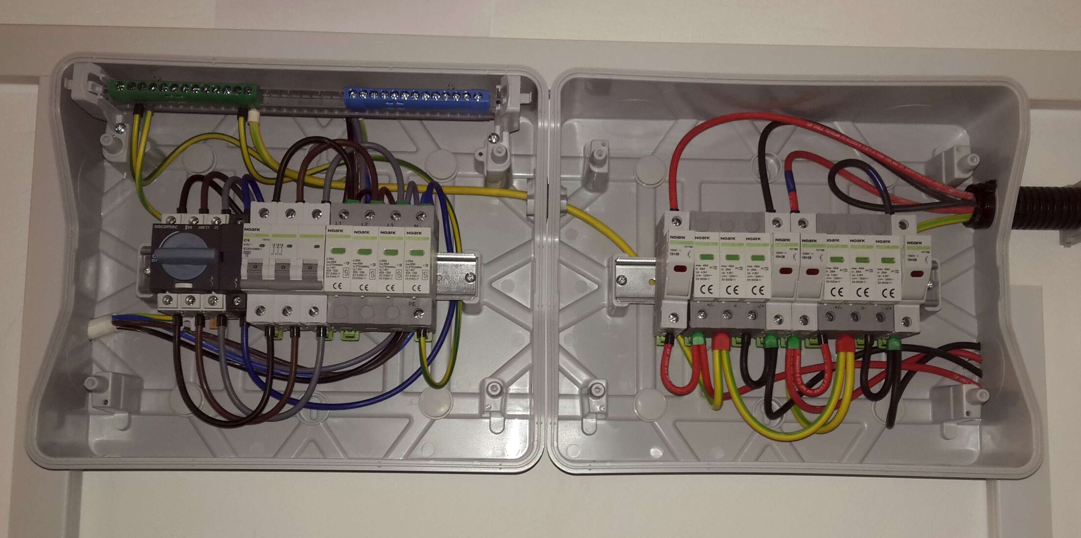 Az inverterbe beépítve vagy ahhoz közel külső eszközként megoldva.Valamint lehet egy DC oldali T1 védelem is, ha direkt-telibe villám találat is szóba jön.