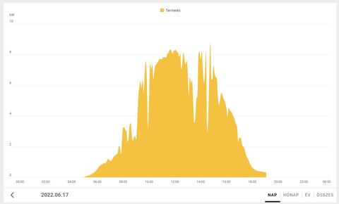 Mivel új a rendszerem, tegnap indítottam be, és én nem vagyok annyira járatos a témában, mint itt sokan, gondoltam, megosztom a mai nap eredményét, és megkérdezem, hogy ez rendben van-e, le lehet-e ebből szűrni valamit. 57,77kWh lett a mai nap termelése. (9,9kWp rendszer, 10kW-os Fronius Gen24 PLus-al). A mély visszaesések esetleg felhősödés miatt lehetnek? Én amúgy elégedett vagyok.