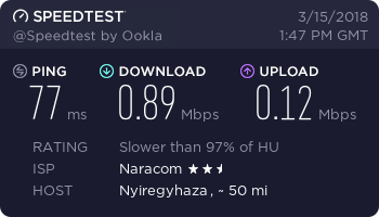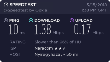 Megint a szokásos esti lassulás, még a VoIP hívás is szakadozik. Még szerencse, hogy van mobilnet. Azon legalább lehet normálisan beszélni.