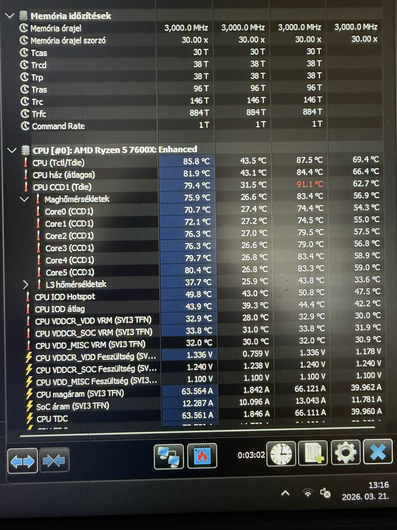 Ami hibát találtam még, hogy a CPU hűtő az alaplapon másik CPU hűtő csatlakozóba volt dugva, nem az "elsődleges"-be. Ezt is javítottam, a fenti eredmények már ezt az állaptot tükrözik.