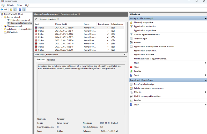 A mai napon például PUBG közben jött elő a hiba egymás után 2x.Esetleg van bármi ötletetek, hogy mi lehet a probléma? Eseménynaplóban ennyi látszik: