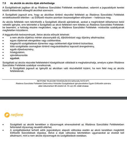 Ilyet találtam az ÁSZF-ben, ez alapján tényleg nem teszik bele az akciós feltételeket, de hogy külön dokumentumban sem tisztázzák (ahogy a többi szolgáltató), azt nagyon problémásnak tartom, mert így nem tudom mire fizetek elő. A szerződésmintában sem látok pontos áraknak rublikát. Egyszerűen a weboldalas reklámfeliraotn kívül semmilyen részletes infó nincs.
