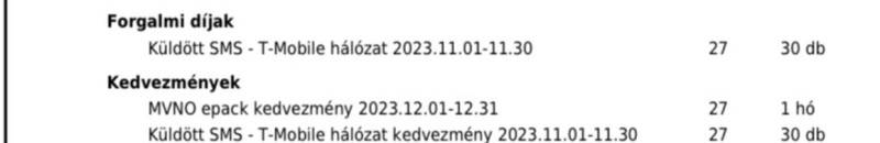 A novemberi számlán mégis csak 30db telekomba küldött sms szerepel.Korábbi hónapokban minden sms szerepelt a számlán.
