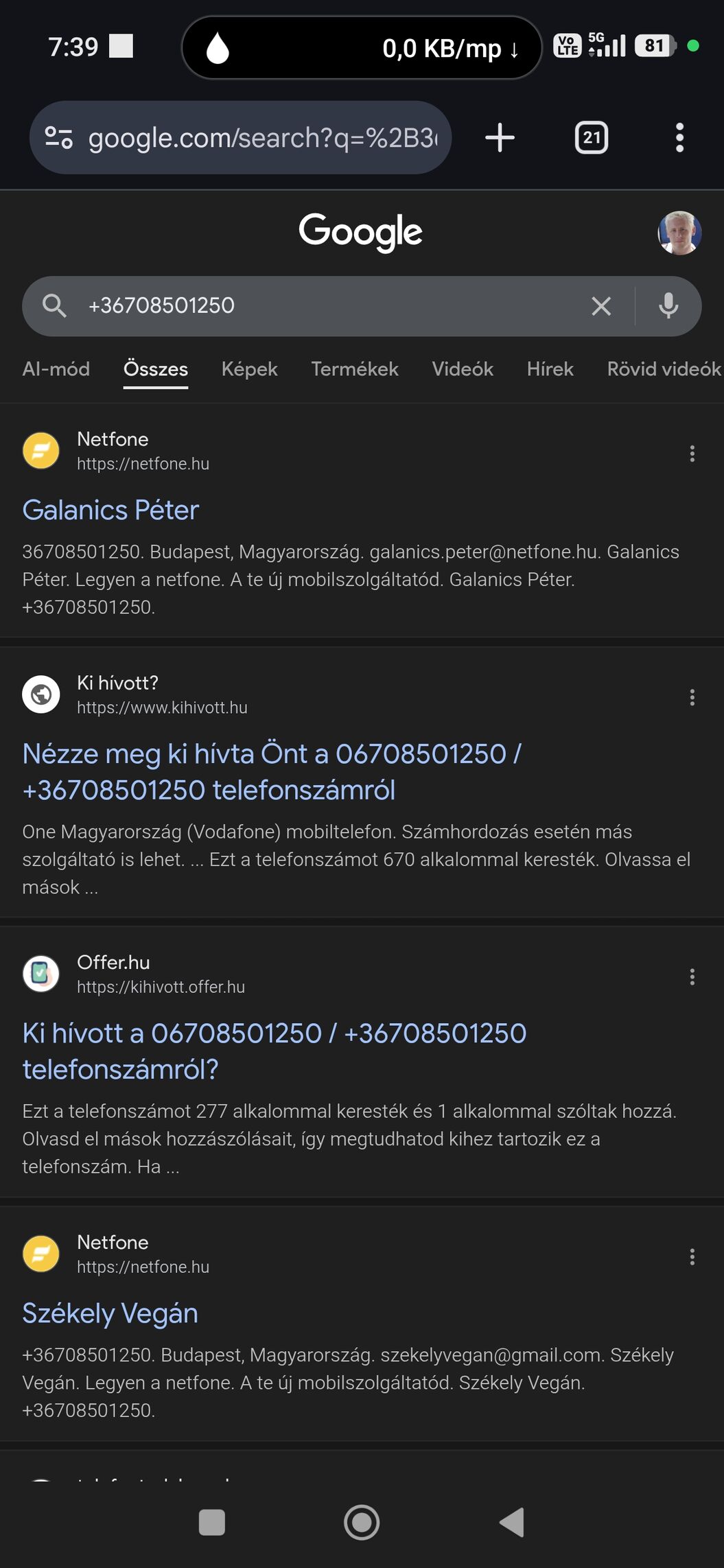 Régóta csinálom, hogy a számomra ismeretlen telefonszámokat simán a google-ba beírva rákeresek.