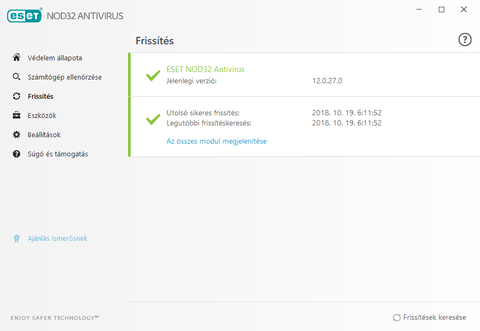 Én régebben erről panaszkodtam az ügyfélszolgálatnak is. Neked akkor mázlid volt. A családban és a munkahelyemen soha nem jelzett, ezt le is írtam nekik, hogy más termékek rögtön jeleznek. Erre azt írták vissza, hogy ez náluk természetes folyamat, mert ha jelentkeznének problémák, akkor ne mindenki kapja meg a hibás terméket. Azóta ez a mechanizmus változhatott, mert jó pár verziónál már jelzett nekem az ESET.