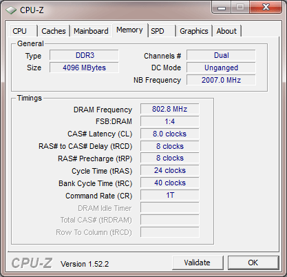DDR3-1600 CL8: 1000/800 = 1,25 -> 10,0 ns ciklusidő