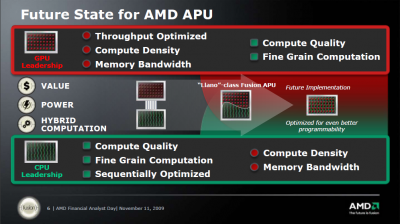- Larger cache, higher memory integration (stacked memory) are being considered for the future era- Llano has CPU and GPU sharing the same memory controller(s)