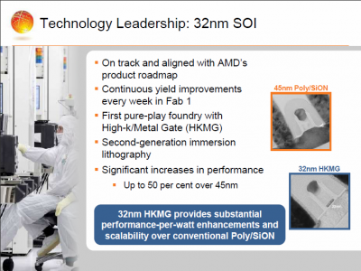 "Pellerin also said that GlobalFoundries is no longer pursuing the one-transistor ZRAM developed by Innovative Silicon Inc. (ISI, Lausanne, Switzerland), a capacitor-less design based on SOI substrates. Instead, GlobalFoundries is working on a thyristor-based memory with T-RAM Semiconductor Inc. (Milpitas, Calif.). GlobalFoundries and T-RAM announced in mid-May that GlobalFoundries would co-develop 32 and 22 nm versions of the T-RAM, which is based on SOI technology, for low-power cache applications."