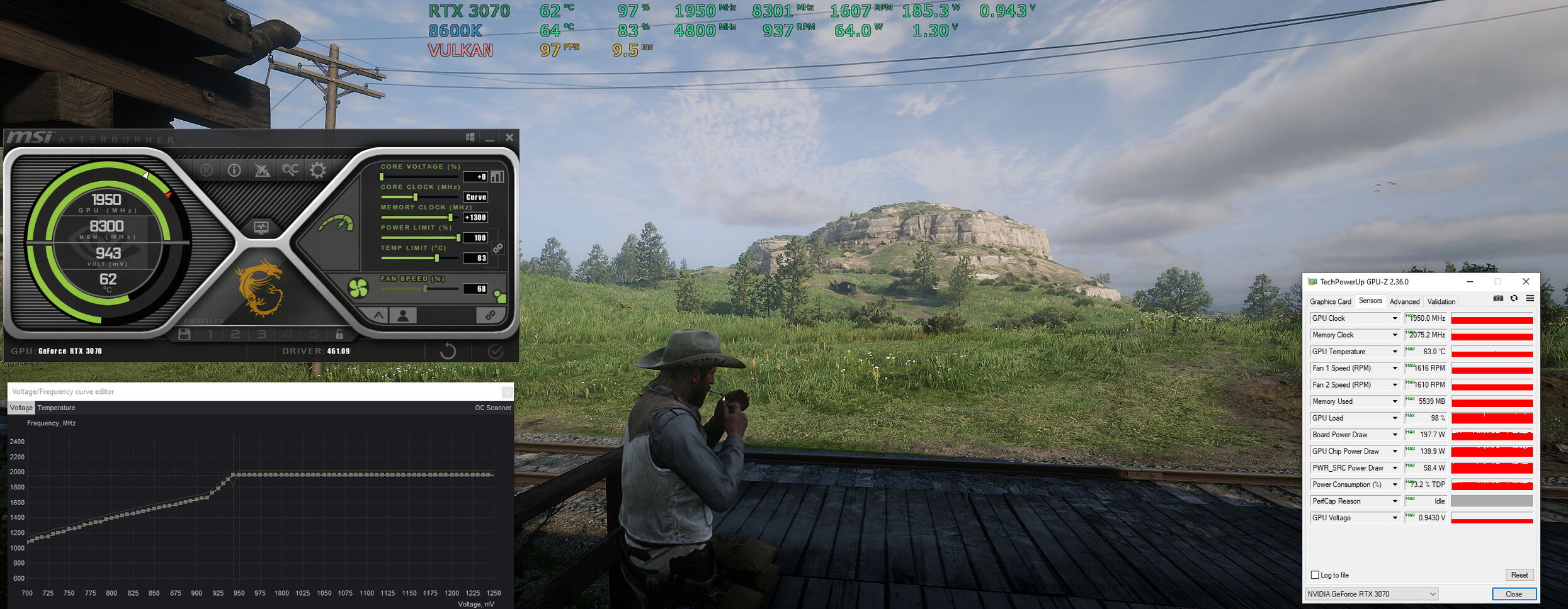 Az MSI kártya viszont a 250W miatt benézett 1950MHz és azalá is és esélyesen ezen a +10W-on múlna, hogy stabil 1995MHz környéke legyen és máris 11.700 pont fölé ugrana vele.Ugye előbbi kártyák tudtak 12ezer pont környékére menni, de az cyberpunkban nem volt stabil, ezért eleve a finomhangolt értékkel mértem itt is, amit a többire is alkalmaztam, tehát a számok itt csak a powerlimit miatt rosszabbak, alacsonyabb feszültséggel több pont lenne (de a többi kártyára is ilyen beállítás volt, így fair az összehasonlítás).