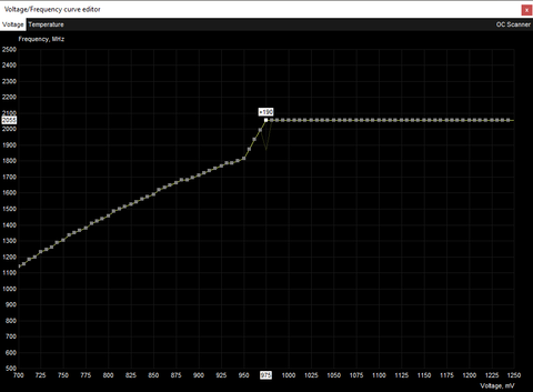 Finomhangolva 1.0V @2025MHz-es voltage curve-re (+4 powerlimit 250W):
