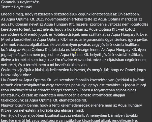 Meg a jó édes anyjukat azt. Hát milyen egy jogi kiskapu ez, hogy a videókártya megy a levesbe? Aqua... --> Aqua.... néven mennek tovább, és nem tehetnek semmiről?? Átvették a webáruházat, de a problémák már sz@rosak? Remélem senki nem fog vásárolni tőlük még egy szöget sem!