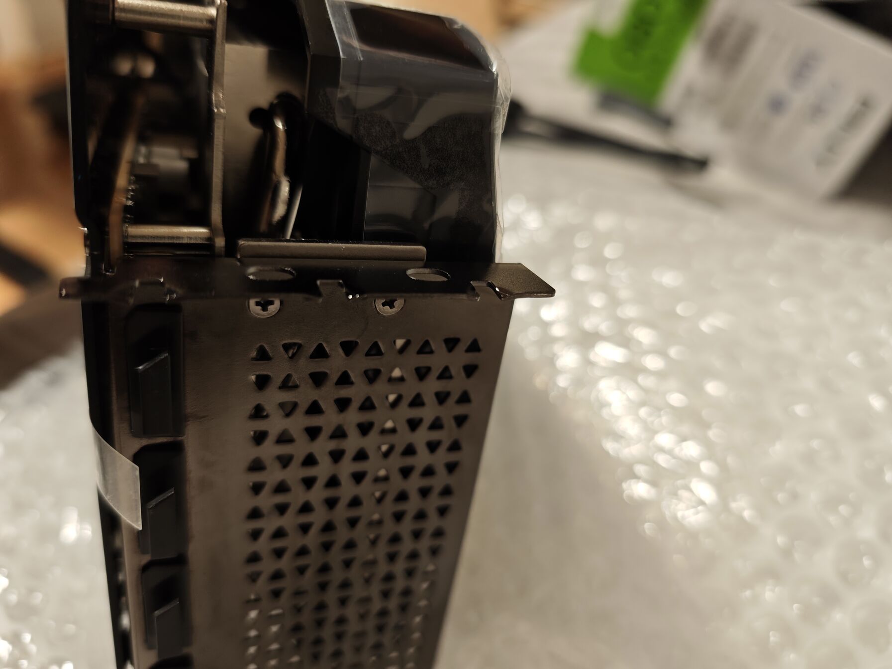 Most kaptam kézhez a PNY RTX5080-at. Kibontás után körbecsodáltam a kártyát, majd meglepődve tapasztaltam azt, hogy oldalról megnézve paszta kinyódást lehet már most látni, kártya hátulján paszta nyomok/maradványok, rögzítő füleken is látszik, hogy már bevolt szerelve, illetve a bordáknál is látszik minimális sérülés + a csavarokon is látszik a backplatenél hogy mintha valaki elnyalta volna.