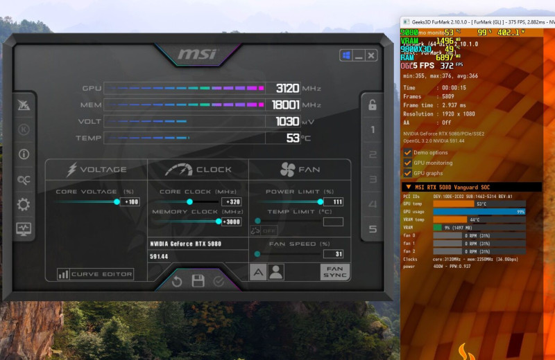 . Nem tudom mi hiányzik még. GPU Tweak III-al és Afterburnerrel folyton csekkolva az tűnt fel ,hogy 965mV fölé nem akar az Istenért sem menni, illetve a max GPU Clock órajel 2985 Mhz volt. A Curve is látható a képen , hogy észrevehető legyen ha bármi hiba is van a módszerrel.
