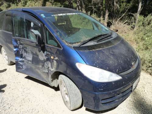 Jah, kicsit para volt mellettem látni pár centire egy Toyota Hilux gallytörő rácsát, szerencsére elég kacskaringós út, nem tudott nagyon száguldni és én is kb 15-el mentem, de azért megtette a srác amit tudott, okosan satuféket nyomott és csúszott tovább a murván aztán bele a mienkbe, én csak a szembe jövő nagy porfelhőt láttam.