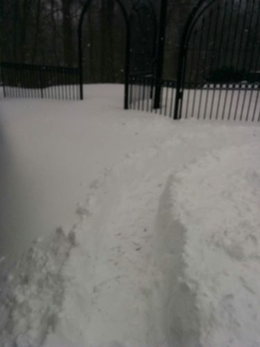 Nem tudom mennyi esett, hivatalosan 20-24 incs tegnap oda, de hordja a szel ezert pl az ajtonk elotti reszen van ahol 40 centi van ahol meter is megvan